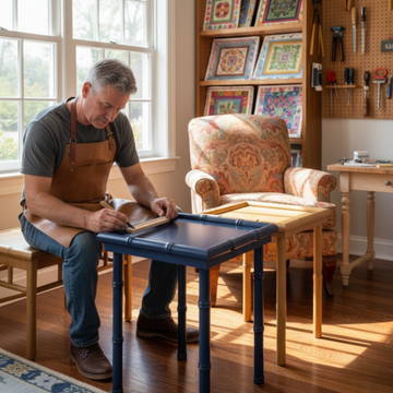 We believe that handcrafted art deserves handcrafted display. Our tables are made in Ohio by skilled woodworkers who use time-honored techniques—solid wood construction, mortise and tenon joinery, and durable catalyzed finishes—to create heirloom pieces that honor the needlepoint placed inside them.