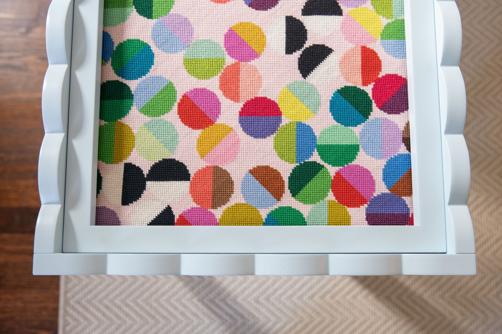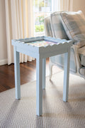 The Light Blue Scalloped Table brings a soft, elegant touch to any space while providing a beautiful way to display your needlepoint creations. Handcrafted in Ohio from solid wood, this table is designed with precision using traditional joinery techniques that ensure durability and stability for generations. The elevated tempered glass top not only protects your artwork but also enhances its visibility, making your needlepoint the centerpiece of any room. Its graceful scalloped edges and light blue finish add a touch of charm, while the ability to easily swap out the needlepoint display keeps it fresh and aligned with your home’s evolving décor.